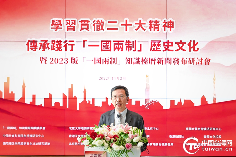 2022年11月2日,“学习贯彻二十大精神·传承践行‘一国两制’历史文化暨2023版‘一国两制’知识台历新闻发布研讨会”在香港大学北京中心举办。(中国台湾网 发)