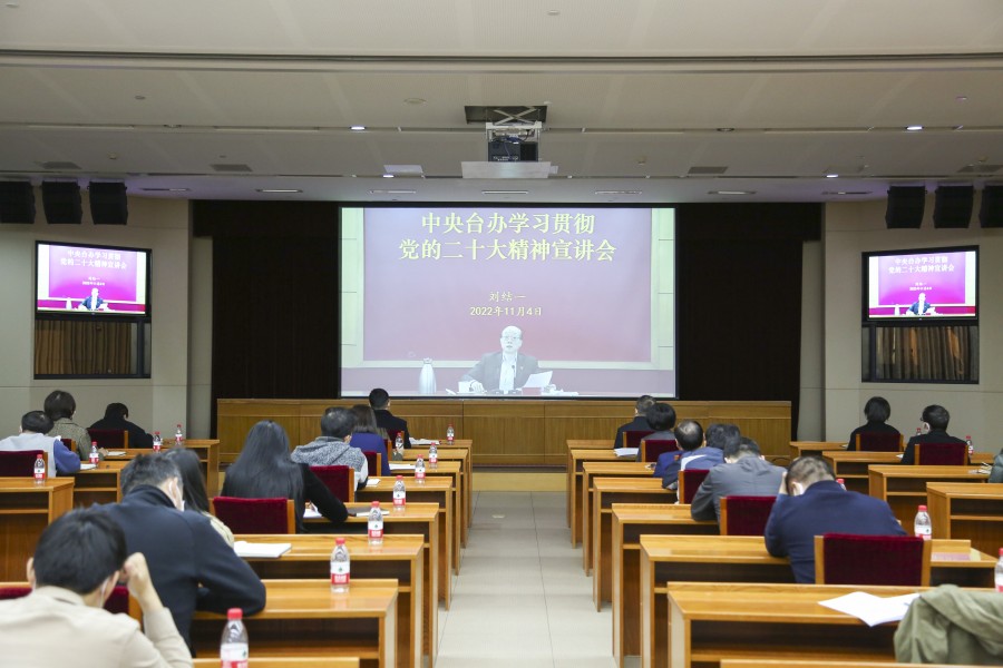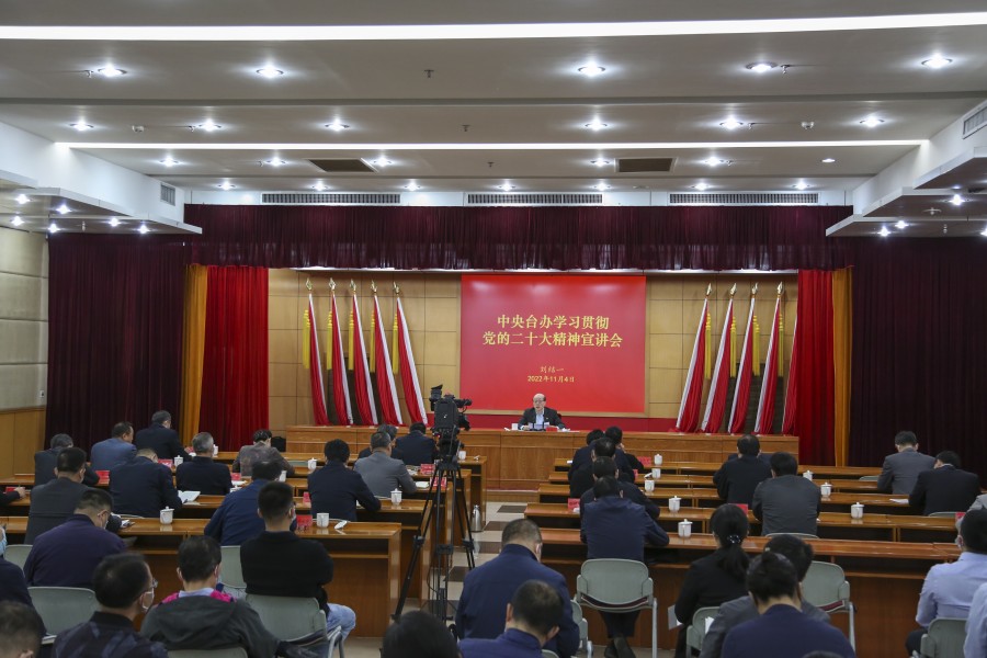 11月4日,中央台办举行学习贯彻党的二十大精神宣讲报告会。中央台办、国务院台办主任刘结一作宣讲报告,中央台办副主任陈元丰、龙明彪出席会议,机关局、信息中心、海研中心、交流中心全体党员干部和其他事业单位党支部委员参加,驻部纪检监察组派员参加会议。