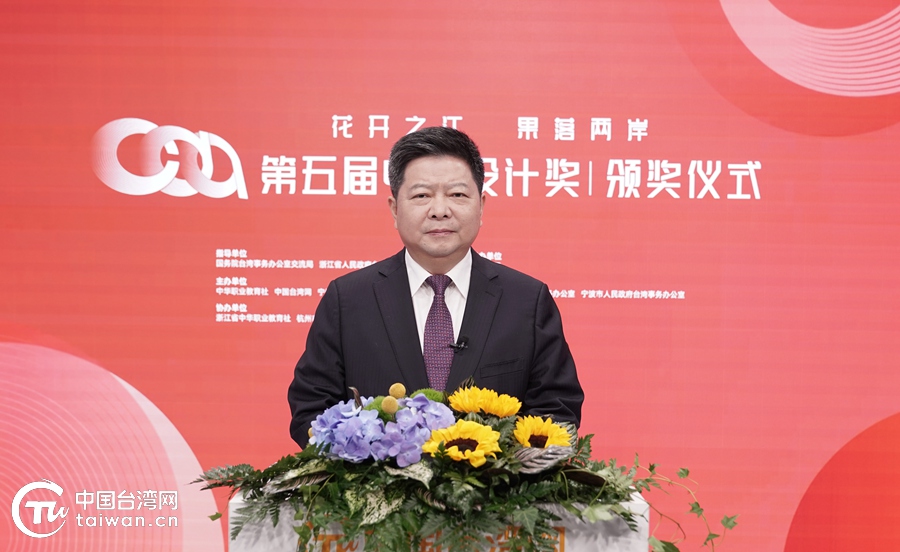中共中央台办、国务院台办副主任龙明彪在颁奖仪式上通过视频致辞。(中国台湾网 符海川 摄)