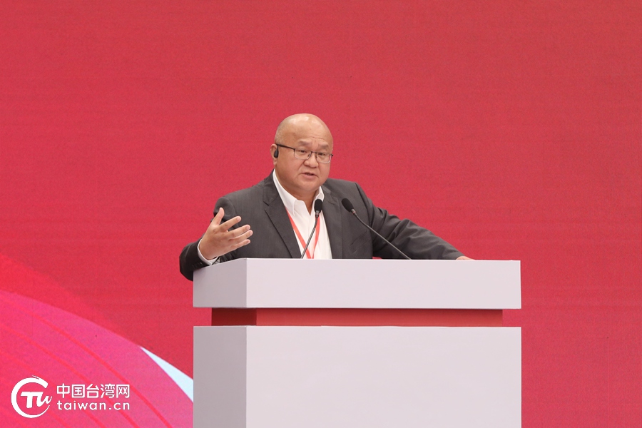 浙江省海促会台商台企专委会主任委员、敏实控股董事会主席秦荣华在颁奖仪式上致辞。(中国台湾网 尹赛楠 摄)