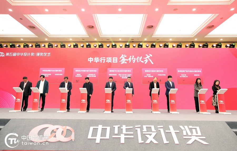 中国台湾网11月8日杭州讯 (记者 尹赛楠 李莉莉 王昱)风吹稻浪,颗粒归仓。11月8日,由国务院台湾事务办公室交流局、浙江省人民政府台湾事务办公室共同指导,中华职业教育社、中国台湾网、宁波市镇海区人民政府、台湾设计联盟联合主办,知产中国承办,浙江省中华职业教育社、杭州市中华职业教育社、宁波市国家大学科技园共同协办的第五届中华设计奖颁奖仪式在浙江省杭州市举行。