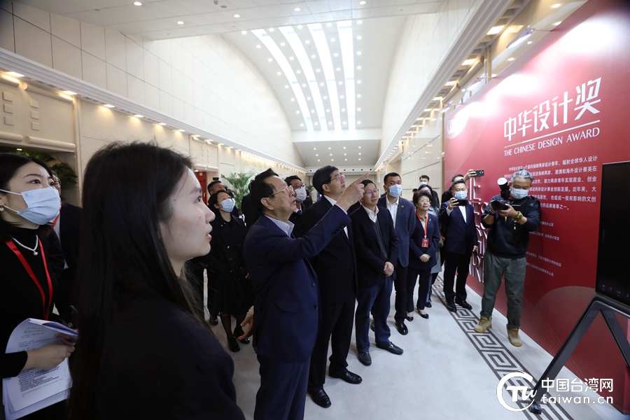 与会领导嘉宾参观中华设计奖历届优秀作品展。(中国台湾网 尹赛楠 摄)
