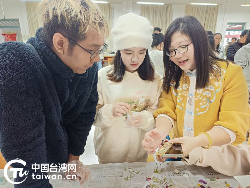 活动现场张玉明老师同留学生一起制作花签(中国台湾网 发)