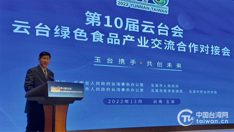 中国台湾网12月8日玉溪报道(记者叶春禄、王大勇) 第10届云台会——云台绿色食品产业交流合作对接会12月8日在云南玉溪市举办。活动由云南省人民政府台湾事务办公室、玉溪市人民政府共同主办。活动以“玉台携手 共创未来”为主题,共叙友情、共商合作、共谋发展。来自云台两地的嘉宾、在滇台商、台企负责人等50余人参加了对接会,玉台两地签约项目4个,协议金额3000万美元。