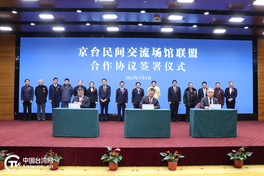 北京台湾会馆、侨福当代美术馆、中央民族大学民族博物馆代表签署馆际联盟协议。(中国台湾网 尹赛楠 摄)