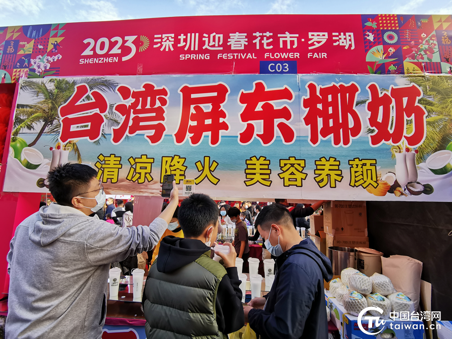 其中一个售卖台湾屏东椰奶的展位异常火爆,前来购买饮品的游客络绎不绝,展位老板连说忙不过来了。一个游客表示,她很喜欢台湾的饮品,很有特色,希望以后在深圳花市上能够品尝到更多台湾特色美食。