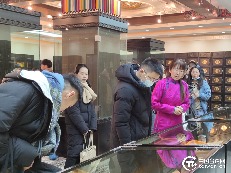 2月8日上午,2023年全国台联第二十九届台胞青年冬令营内蒙古分营(西线)开营式在内蒙古大学北校区举行。图为营员们参观内蒙古大学图书馆内的蒙古文古籍文献展阅室。(中国台湾网 高嘉鸿 摄)