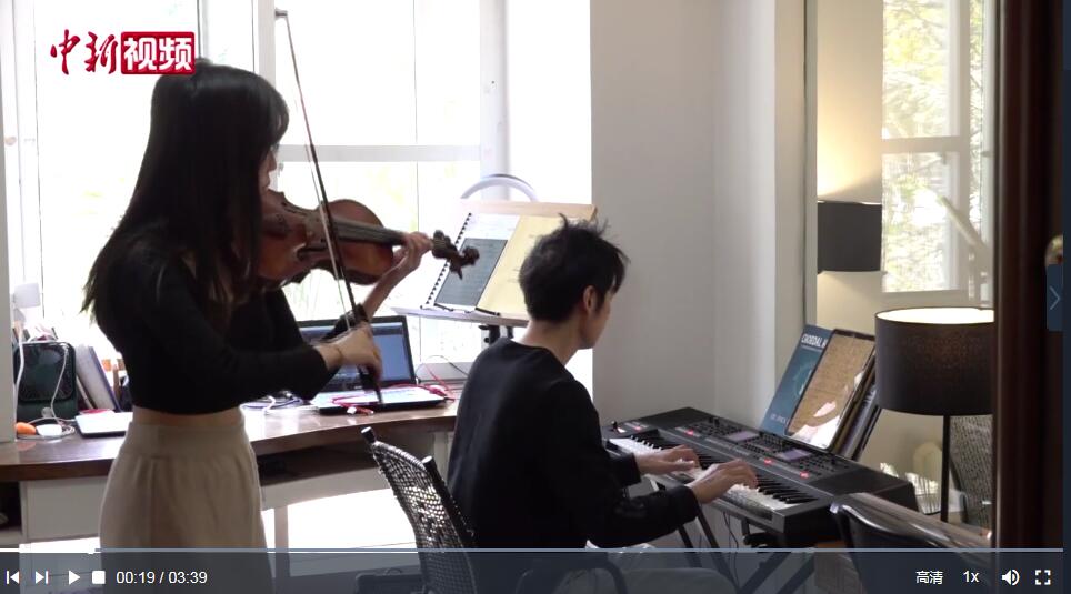 【解说】随着自己在福州站稳脚根,张家豪便鼓励专长于小提琴的妻子林佳臻也来福州发展。小两口两地分居半年后,林佳臻“夫唱妇随”来到福州,在小学担任音乐老师,两人一同打拼自己的音乐事业。