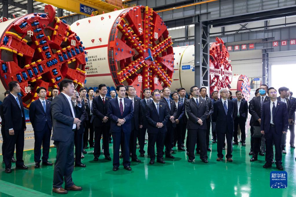 4月2日,在湖南省长沙市,马英九先生一行走进铁建重工的车间。新华社记者 陈键兴 摄