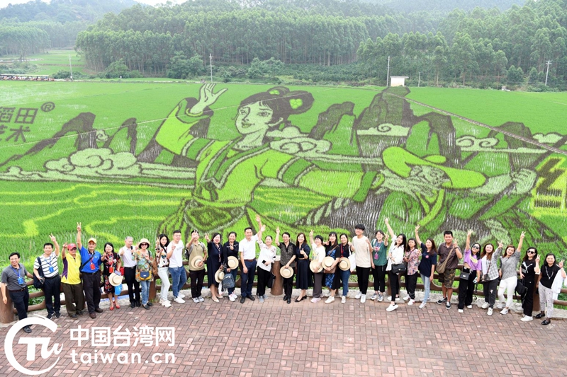 出席活动的嘉宾在稻田艺术景区合影留念(中国台湾网 王大勇 摄)