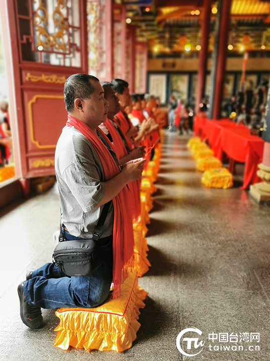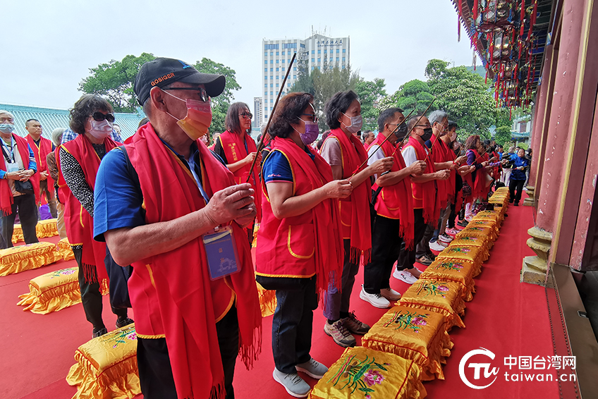 参加晨拜妈祖仪典的台湾同胞在敬香祈福。(中国台湾网 薛超 摄)