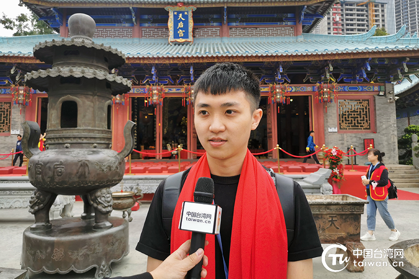 “这里祭拜妈祖的仪式跟台湾不太一样,更加庄严肃穆,充满气场。”来自高雄的樊轩廷第一次来到大陆,直呼不一样。“这里跟我想象中完全不一样,很震撼。我要跟台湾的朋友介绍大陆,希望他们也到大陆来走走看看。”刚刚大学毕业的他还说,考虑到大陆继续深造。