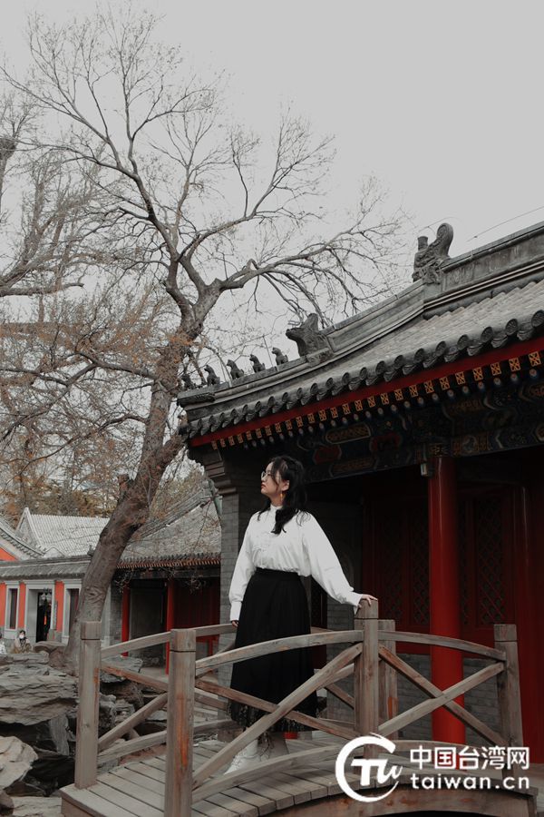 李欣桦喜欢穿汉服在古建筑旁拍照(李欣桦供图,中国台湾网 发)