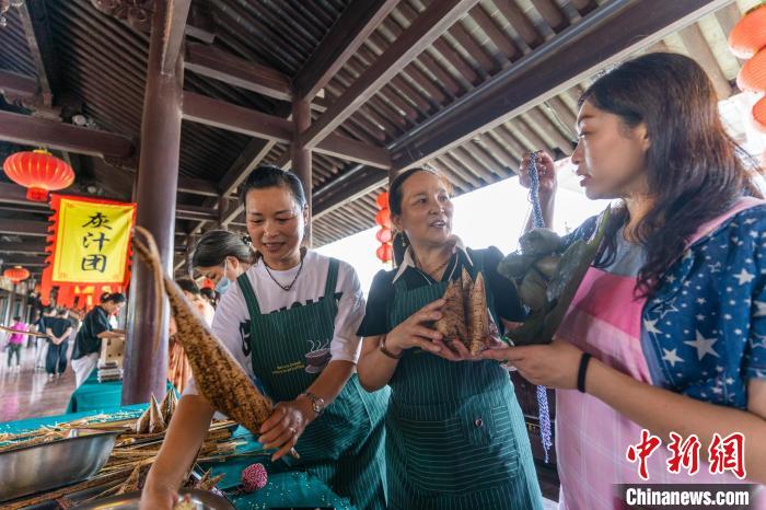 近日,在宁波市海曙区鄞江镇它山堰千年廊桥,30余名台胞与当地居民一起开展“古镇古韵迎端午 两岸民俗‘续乡情’”欢度端午活动。