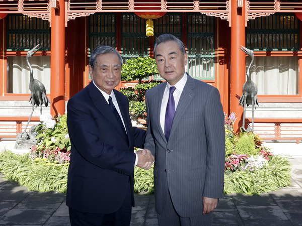 王毅会见日本国际贸易促进协会会长河野洋平(图片来源:外交部网站)