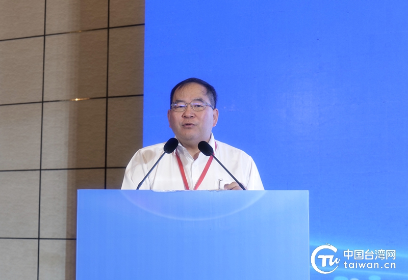 海峡两岸经贸文化交流协会秘书长邓岱贤作主旨演讲。(中国台湾网发)