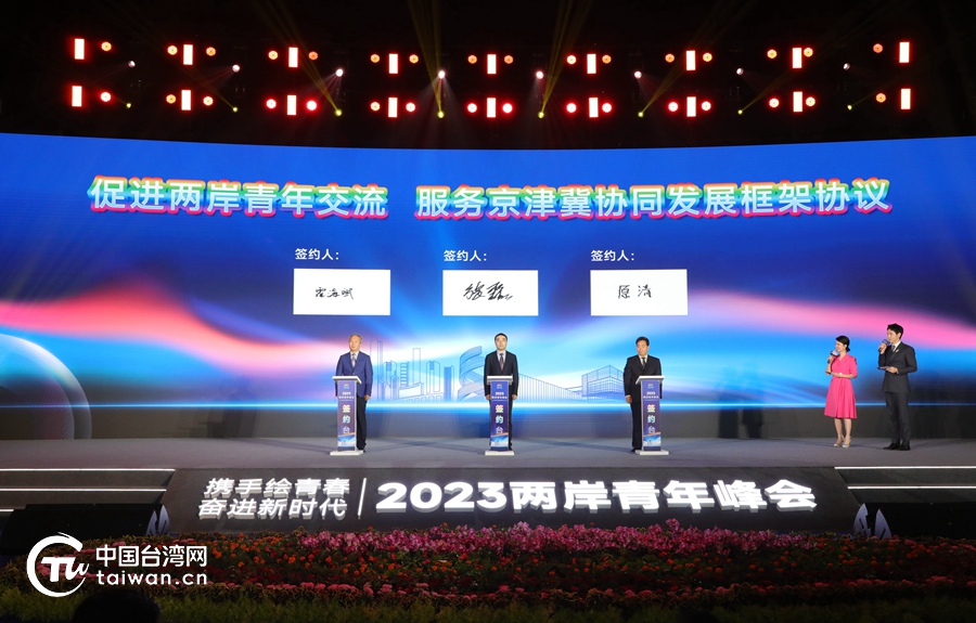 活动现场,京津冀台办共同签订《促进两岸青年交流 服务京津冀协同发展框架协议》。峰会还为“全国最美家庭”“首都劳动奖章”“北京市工人先锋号”台青台企获得者颁奖。“遇见在这最好年代,我们一起绽放光荣精彩。”开幕式上,两岸青年歌手联袂演唱了峰会主题曲《青春致敬未来》,以音乐为媒,搭建起两岸沟通的桥梁。