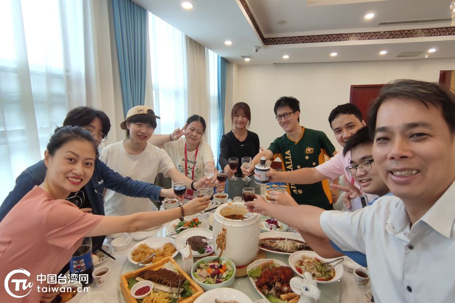 台湾青年们品尝内蒙古当地特色晚宴。(中国台湾网 高嘉鸿 摄)