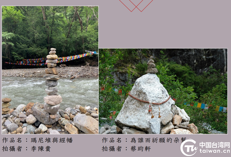 台湾学生摄影作品《玛尼堆与经幡》和《为谁而祈福的朵帮》。(中国台湾网 发)