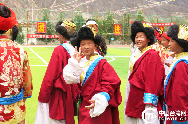 台湾学生镜头下刚跳完锅庄舞的藏族小学生。(中国台湾网 发)