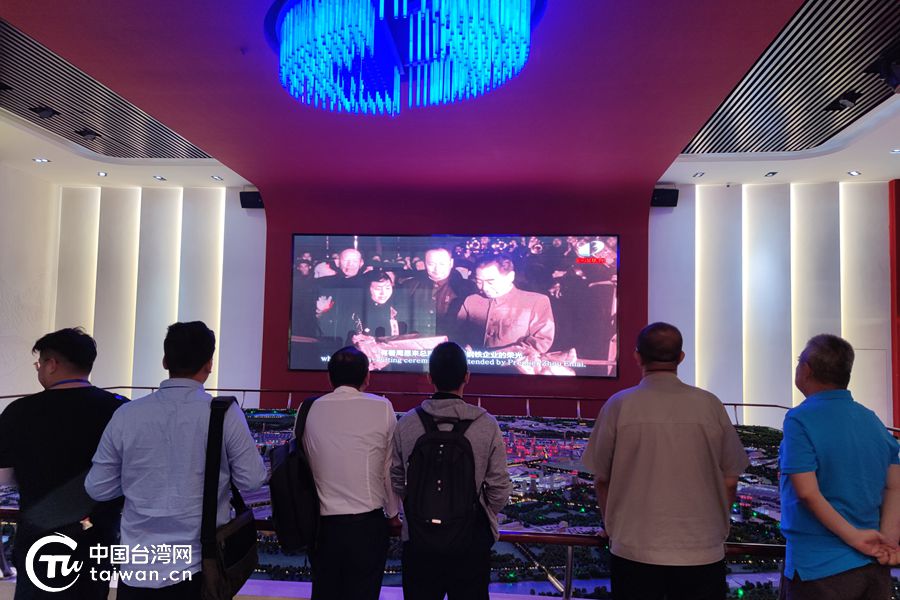 台湾青年们观看包钢集团宣传片。(中国台湾网 高嘉鸿 摄)