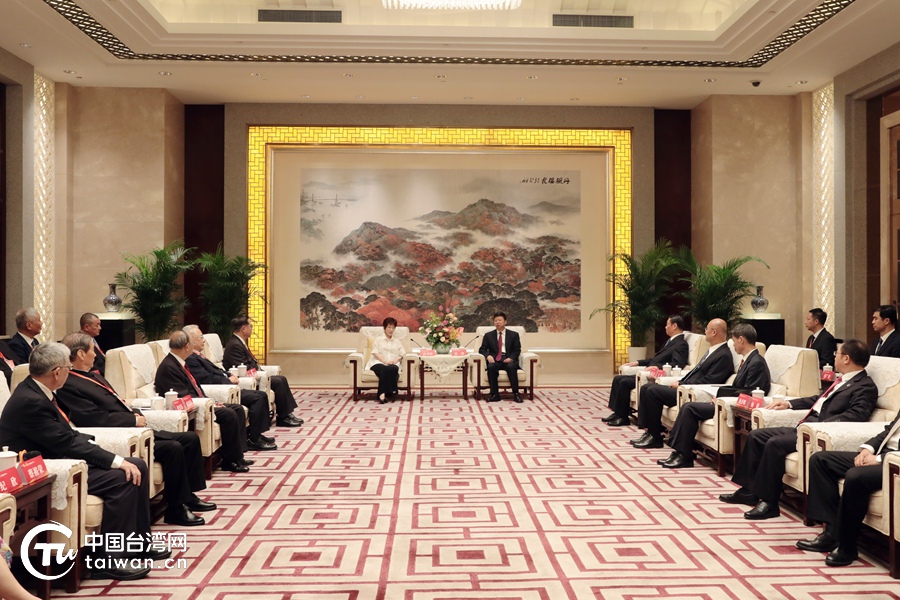 中共中央台办、国务院台办主任宋涛7月24日在南京会见中国国民党前主席、中华青雁和平教育基金会董事长洪秀柱等参加第三届“携手圆梦——两岸同胞交流研讨活动”的台湾嘉宾代表。(中国台湾网 尹赛楠 摄)