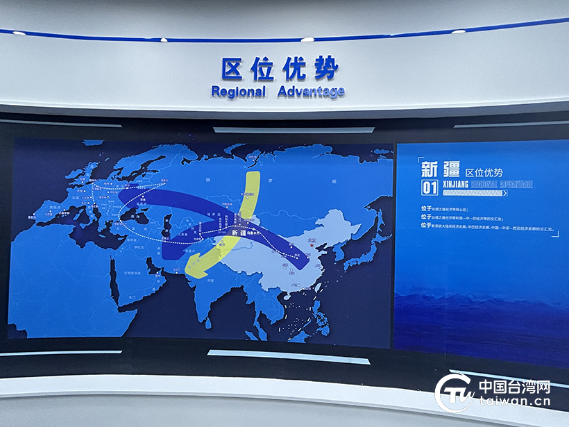 克拉玛依云计算产业园区里展示的克拉玛依区位优势。(中国台湾网 常卓然 摄)