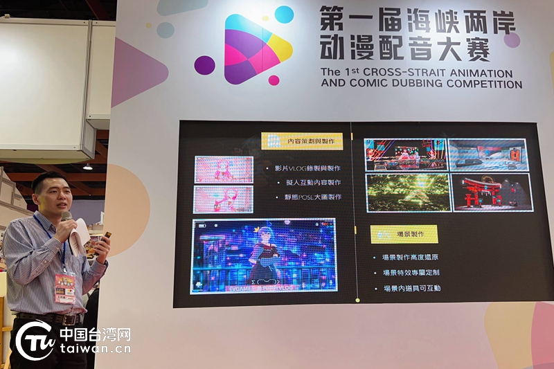 中国台湾网8月3日讯 7月27日至31日,第一届海峡两岸配音大赛亮相第22届台湾漫画博览会。本次大赛设有台湾赛区推介会、优秀动漫展播、配音秀展演等多个环节。