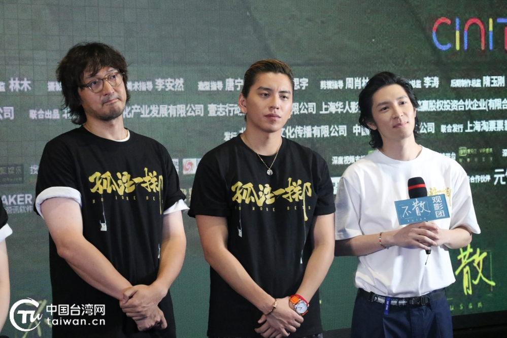 从左到右依次为演员王传君,中国台湾演员王大陆,中国香港演员孙阳。(中国台湾网 林鹏 摄)