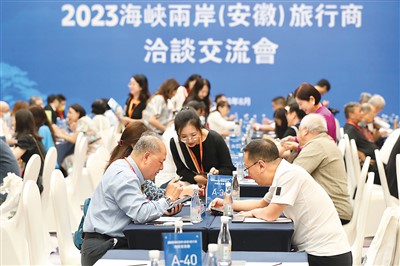 “这次见到许多台湾来的新老朋友,向他们介绍了大陆近年来的变化。大家都希望两岸旅游业尽早全面恢复交流合作,希望更多台湾同胞到大陆深度旅游。”近日,2023海峡两岸(安徽)旅行商大会在安徽举办,吸引两岸旅游业界700多名嘉宾参加。前来参会的江苏苏州文化国际旅行社有限公司总经理张华明难掩兴奋地对记者说。