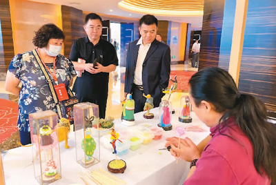 图为两岸旅游业者在观赏非遗项目庐州面塑。