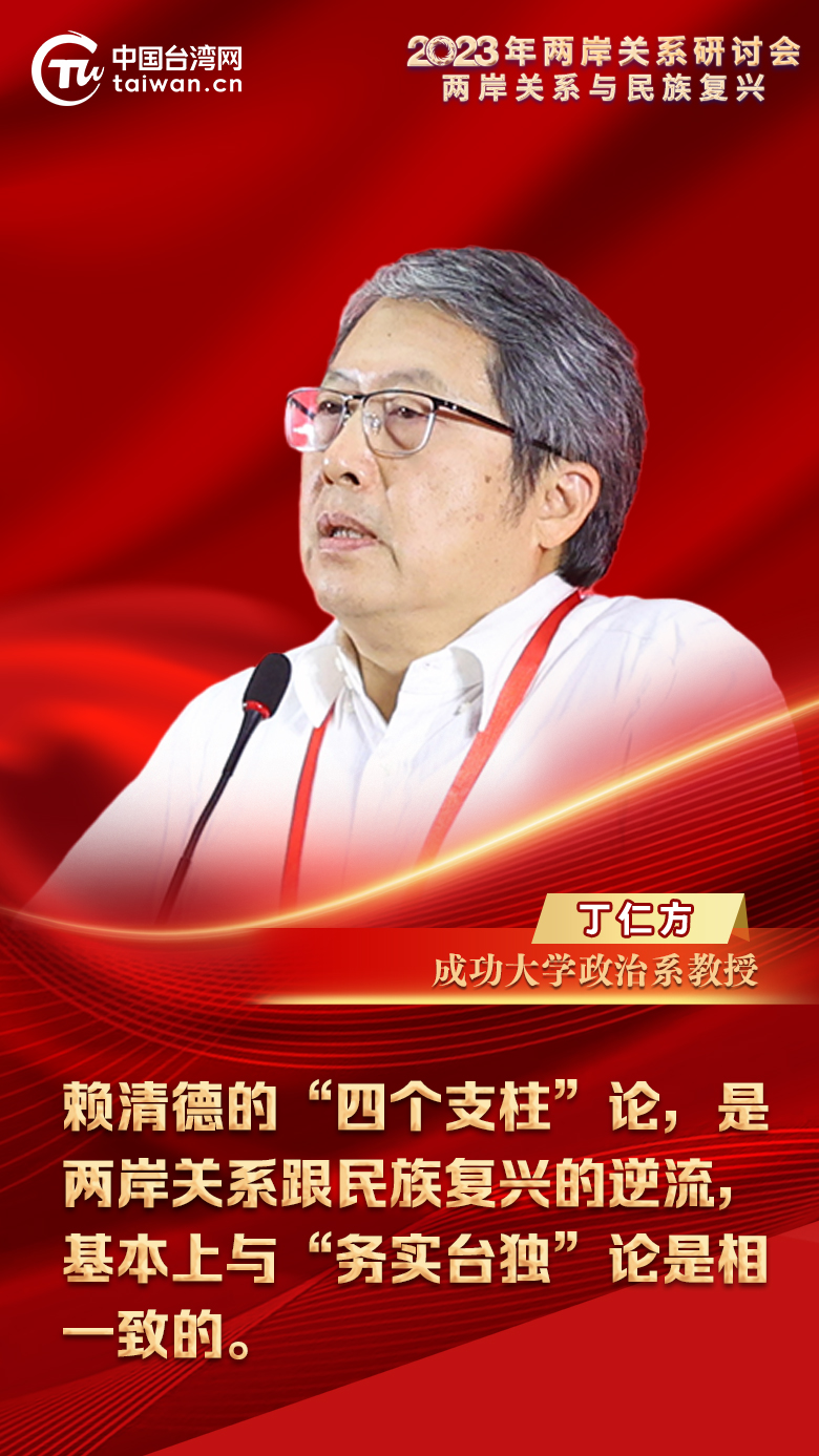 2023年两岸关系研讨会8月17日上午在四川成都开幕。成功大学政治系教授丁仁方在活动上表示,赖清德的“四个支柱”论,是两岸关系跟民族复兴的逆流,基本上与“务实台独”论是相一致的。