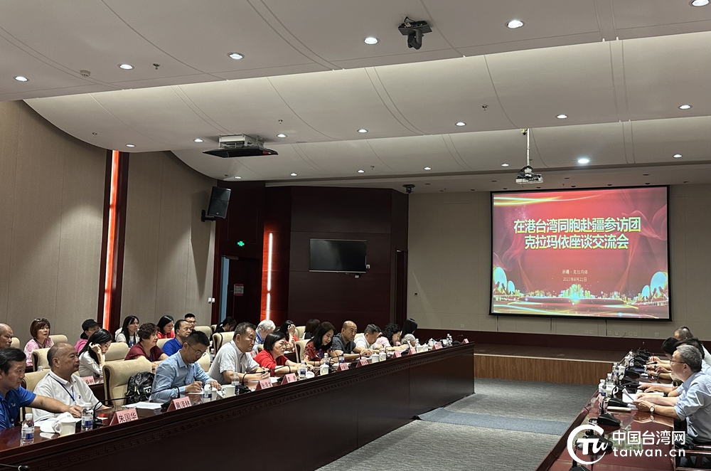 全国台联香港台胞新疆北京经贸文化参访团与克拉玛依当地代表座谈交流。(中国台湾网 发)