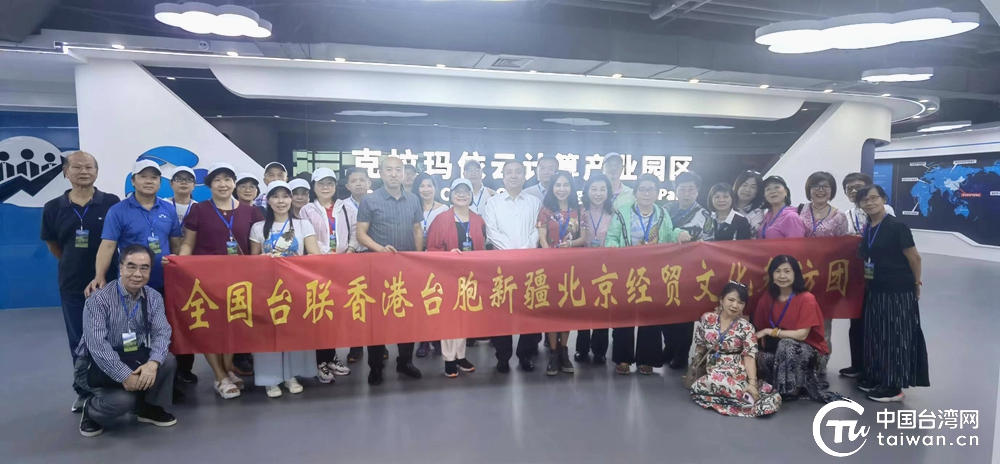全国台联香港台胞新疆北京经贸文化参访团在克拉玛依云计算产业园区合影。(中国台湾网 发)