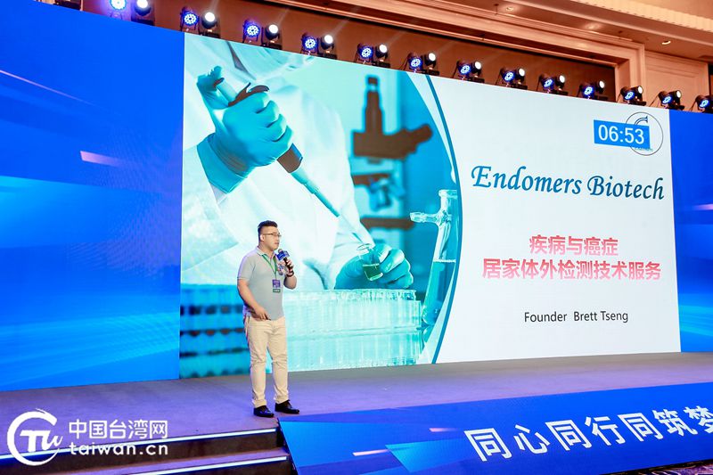 “疾病癌症居家体外检测技术服务”项目负责人曾俊诚路演现场。(中国台湾网 发)