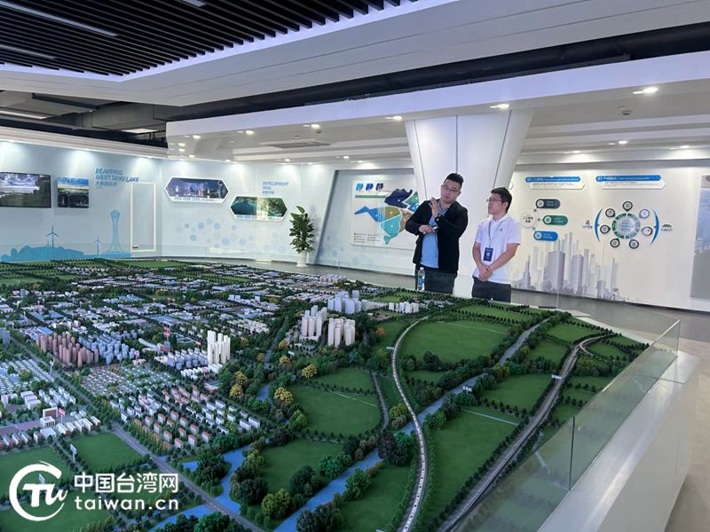 曾俊诚参访西太湖产业园区的医疗大健康展馆(左一为曾俊诚)。(中国台湾网 发)