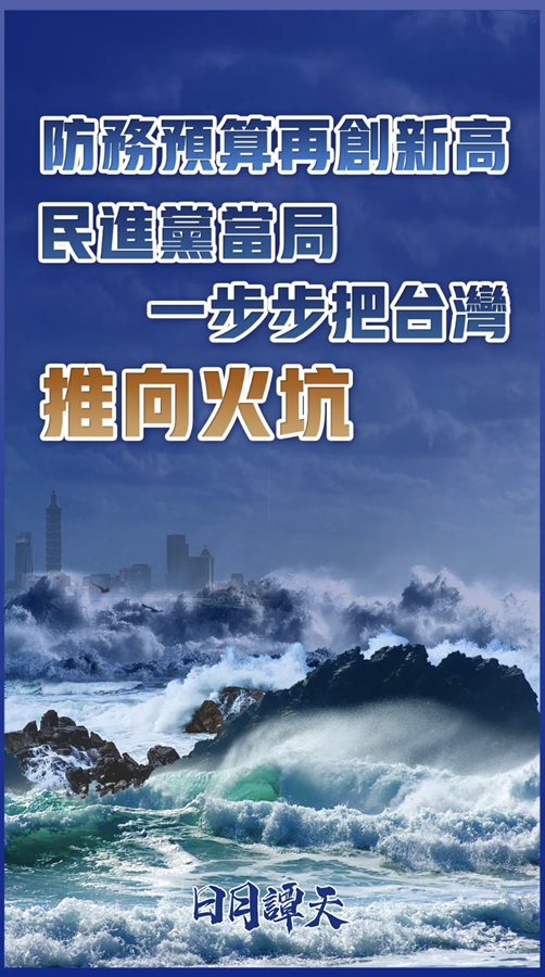 民进党当局穷兵黩武,疯狂增加防务预算,是自寻绝路,只会一步步把台湾推向火坑!