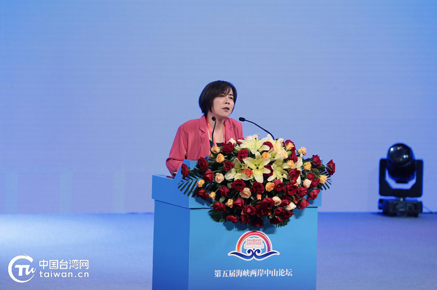 台湾作家、政治评论员黄智贤在第五届海峡两岸中山论坛开幕式上致辞。(中国台湾网 尹赛楠 摄)