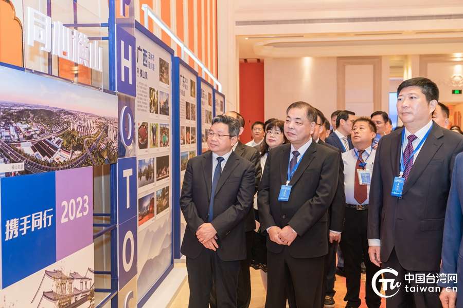 两岸嘉宾参观反映两岸“横山”乡镇近年发展成果的摄影作品展。(中国台湾网 发)