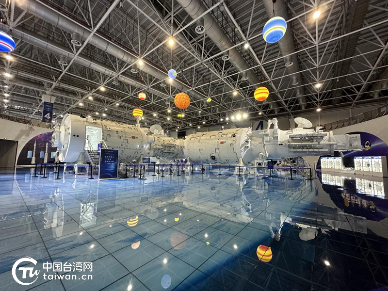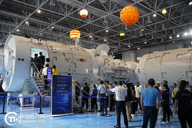 “天宫”空间站T型1:1展示舱。(中国台湾网 薛超 摄)