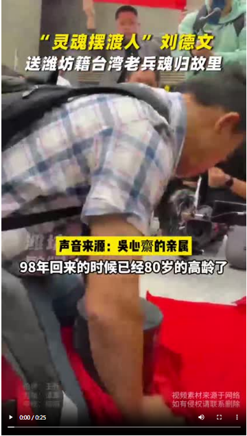 在这趟航班上,有一位来自中国台湾的特殊客人,此行的目的,是送一位潍坊寿光籍已故去台老兵的骨灰回家。他就是已坚持20余年,义务寻找、护送约300位已故去台老兵骨灰回祖国大陆安葬,被誉为“灵魂摆渡人”的台湾同胞刘德文。