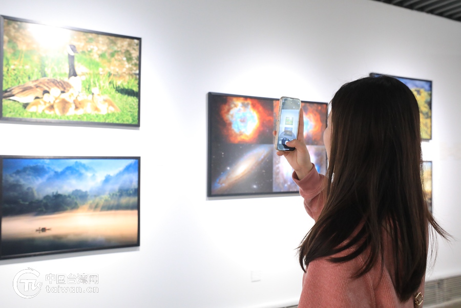 摄影作品展吸引两岸同胞关注。(中国台湾网 尹赛楠 摄)