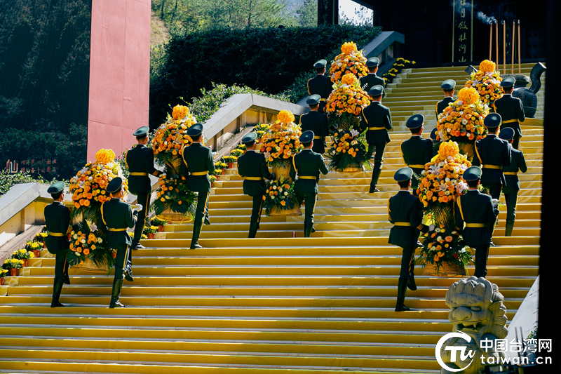 向黄帝祠进献花圈。(中国台湾网 张曈 摄)