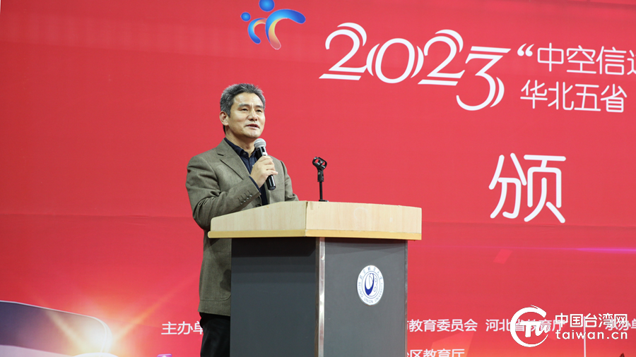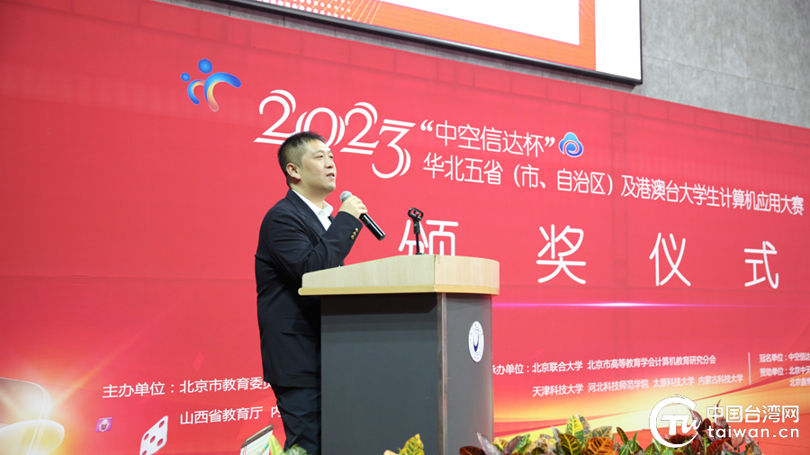 北京市教委高教处处长刘霄在颁奖典礼上做了讲话。(中国台湾网 发)