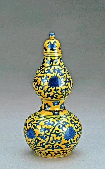 黄釉青花葫芦瓶。图片来源:台湾《联合报》