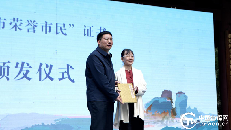 “我是台湾人,也是四川人”——蔡璧徽女士获“江油市荣誉市民”证书。(中国台湾网发)