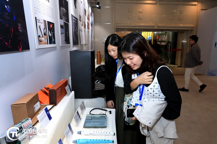 参与活动的台湾青年参观中华设计奖历届优秀作品展。(中国台湾网 尹赛楠 摄)