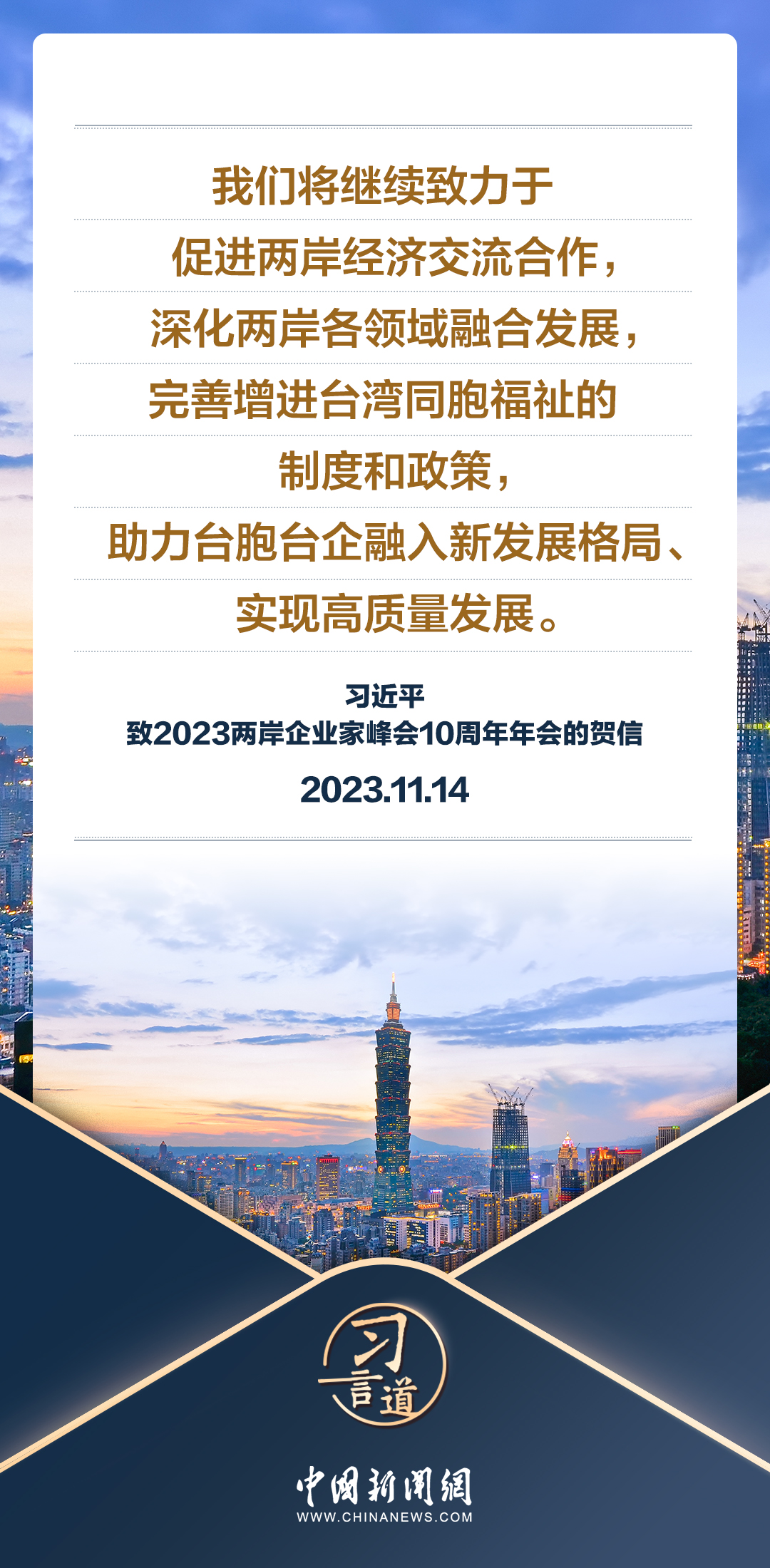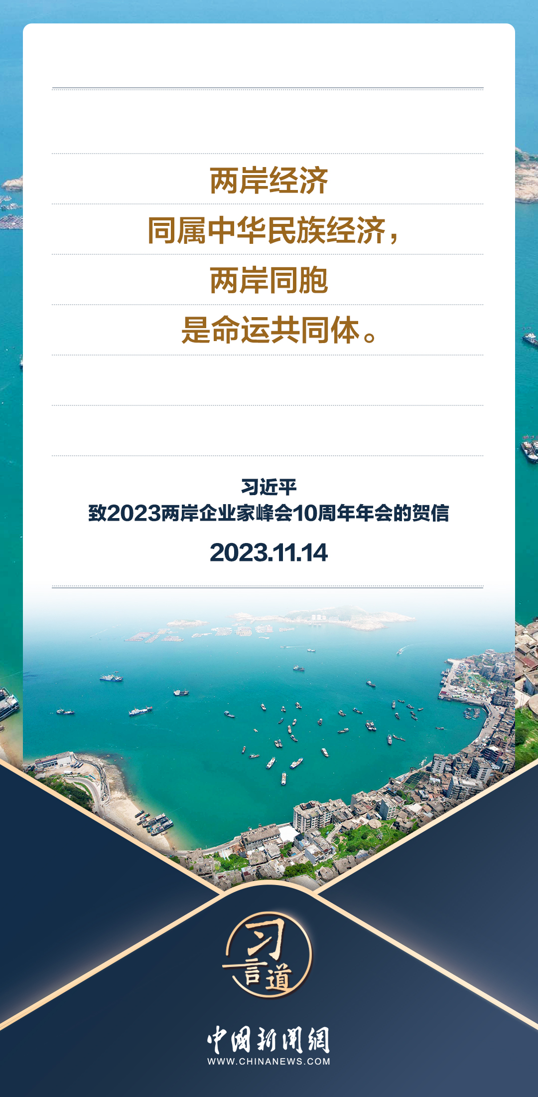 中共中央总书记、国家主席习近平14日向2023两岸企业家峰会10周年年会致贺信。习近平指出——