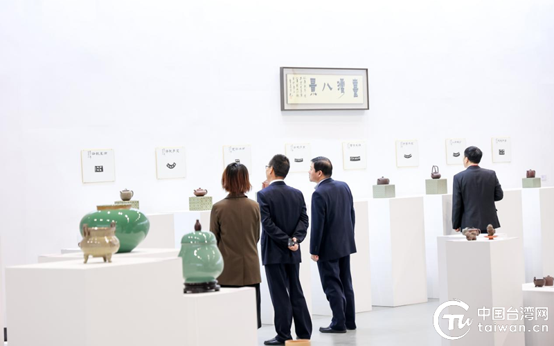 文化创意方面,以龙泉青瓷、汝窑、钧窑、定窑、台湾莺歌烧以及宜兴紫砂等推出了一批精品作品。名瓷名器和新陶瓷艺术,在传统与当代的碰撞之间,呈现两岸艺术家对器物美学、造物哲学细致入微的思考和体察。西泠印社副社长、著名书法家童晏方先生题写了台湾八景,分别镌刻于八柄紫砂壶上,成为展览重要一景。