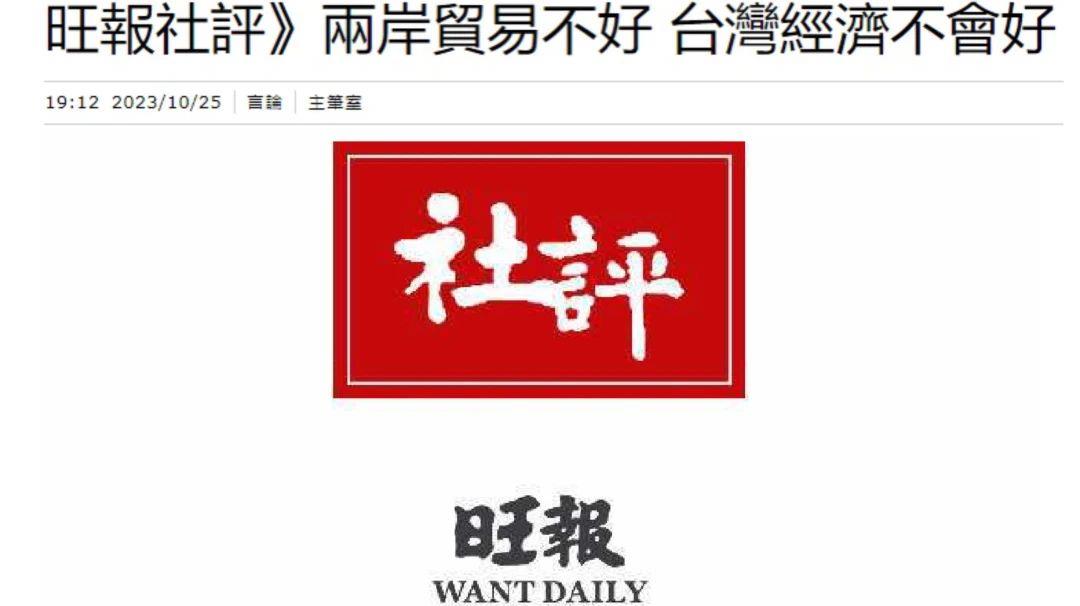 《旺报》直言,历史轨迹清楚说明,随着两岸经贸高度融合,台湾与大陆早已形成一个紧密的经济联合体。